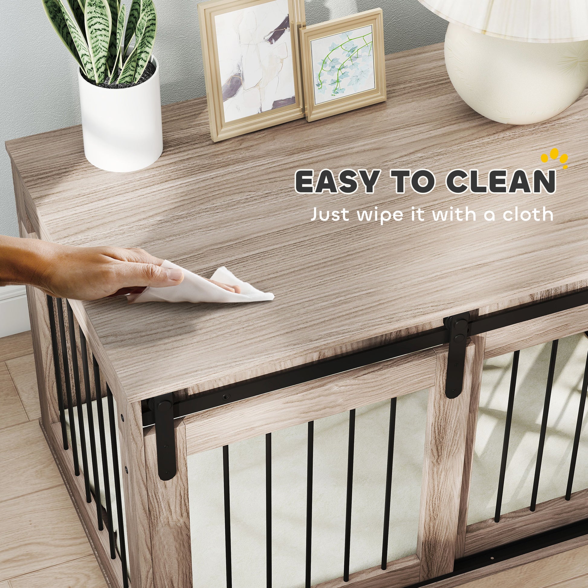 PawHut 98cm Dog Crate Furniture with Removable Cushion for Large Dogs - Brown
