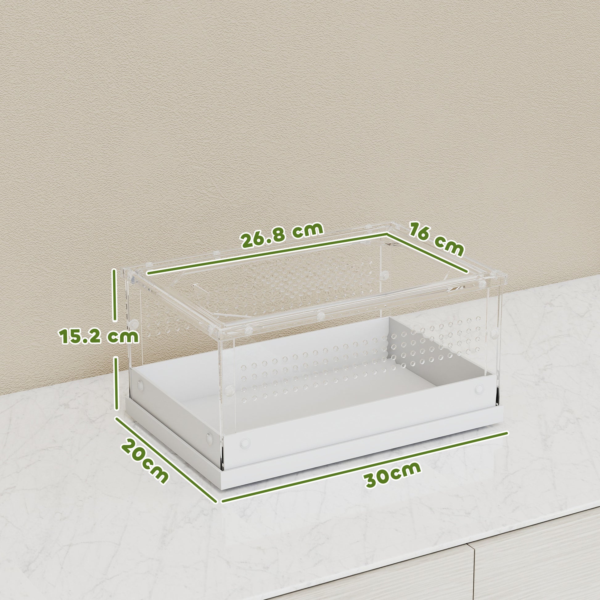 PawHut Acrylic Reptile Terrarium with Top Sliding Door, Vents, for Snake, Frog, Spider, Gecko, Tarantula, 30 x 20 x 15 cm