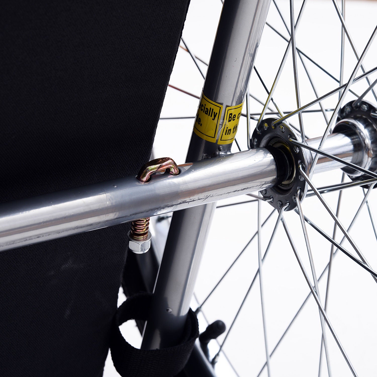 - Two smooth and comfortable rolling 20†wheels that handle on and off road terrains
