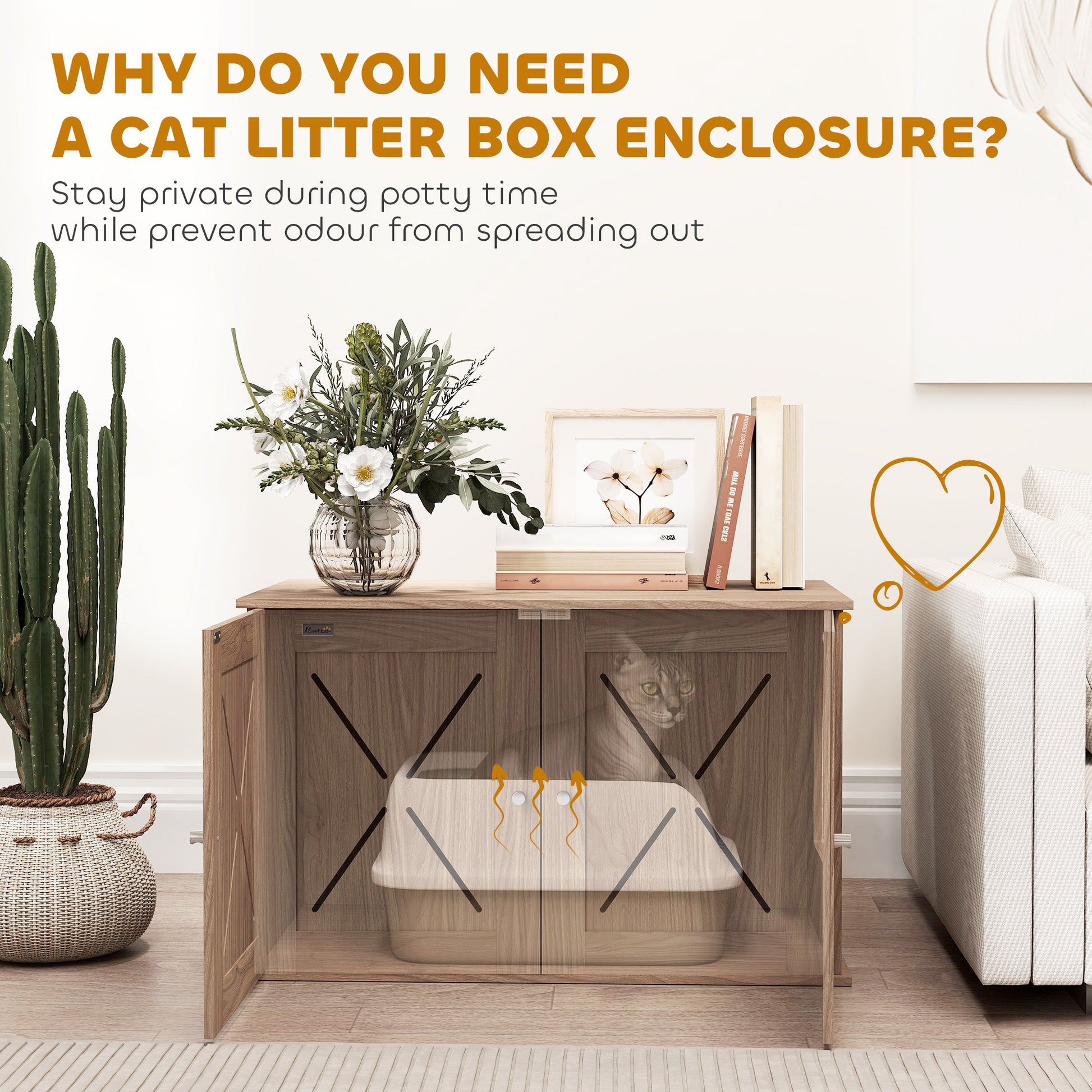 PawHut Cat Litter Box Enclosure with Double Doors and Side Entrance, Non-Slip Pads for Living Room, Walnut Brown