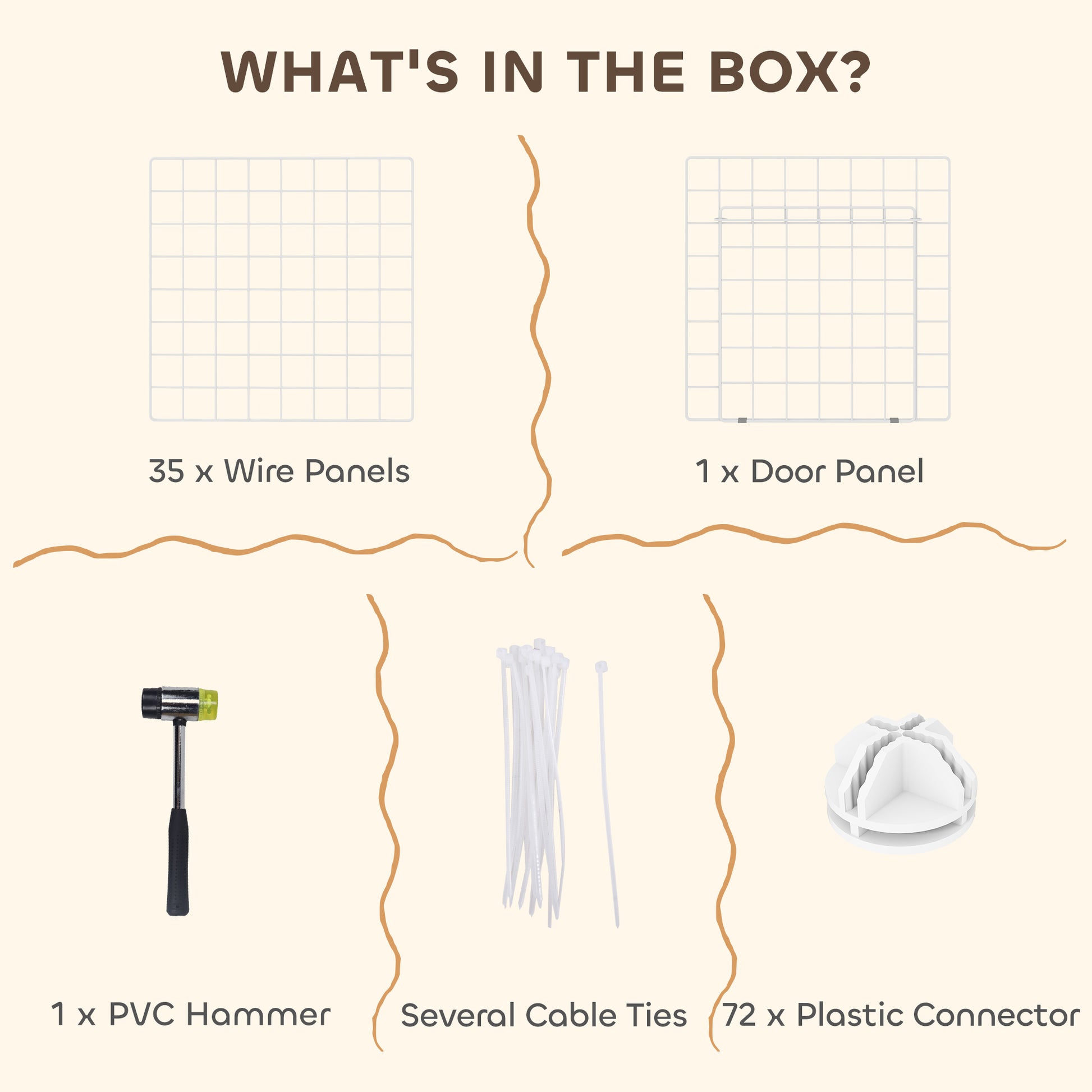 Ensure peace of mind when you want to keep your pet away from certain areas, thanks to this rabbit cage from PawHut. Consisting of 36 panels, the small animal cage gives you plenty of control of the shape and sized desired, with all required accessories (connectors and cable ties) included to fix all pieces together in place. Made from metal, each piece is strong and rigid to keep your pet in place, with an open air design to ensure they can breathe and not feel completely trapped.