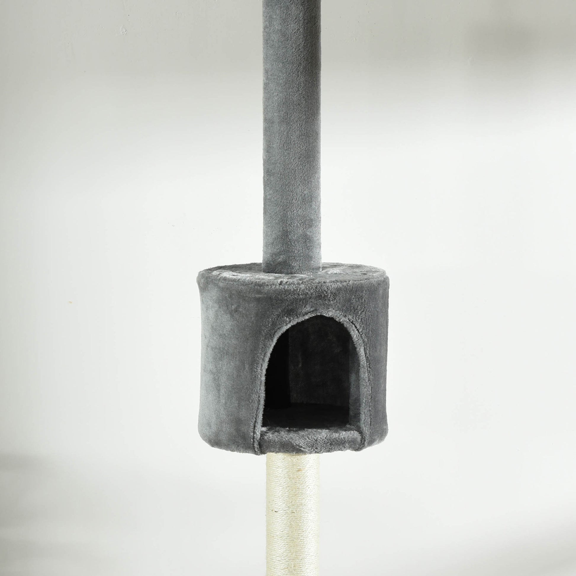 PawHut Floor to Ceiling Cat Tree for Indoor Cats, Kitten Tower, Condo, Multi-Layer Activity Center, Indoor Pet Play House with Solid Scratching Post Hanging Balls, Light Grey