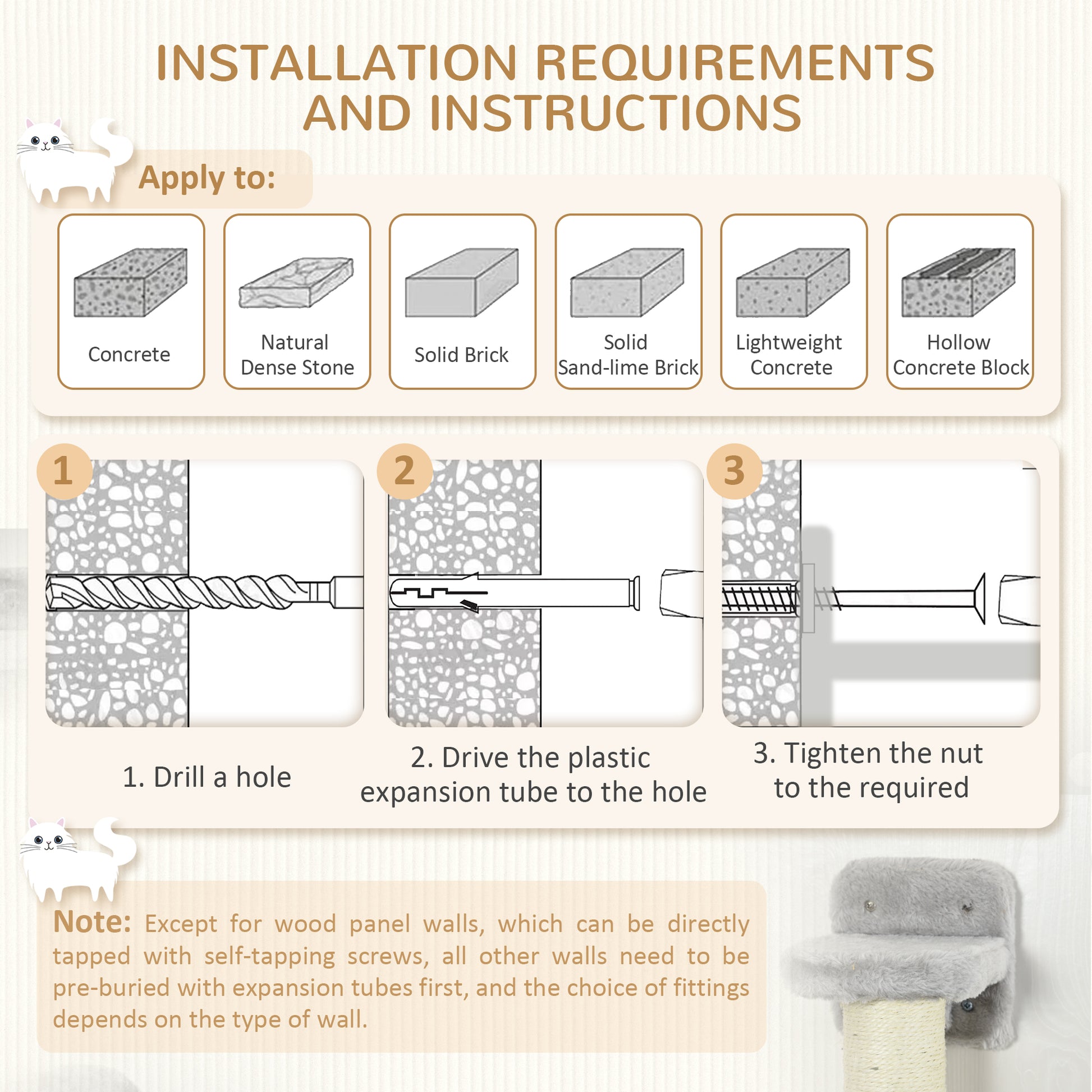 Bring in this practical PawHut cat shelf set, turning your wall into a comfortable pet haven. A safe space for pets to act on their would-be destructive behaviours, they'll dig their claws into the scratching posts, whilst the spring teaser ball satisfies their hunting habits. To relax, they have multiple platforms to curl up on – all covered in soft plush for extra snugness. Utilising your wall, it doesn't use any floor space - suitable for smaller rooms. Fill each day with comfort and joy.