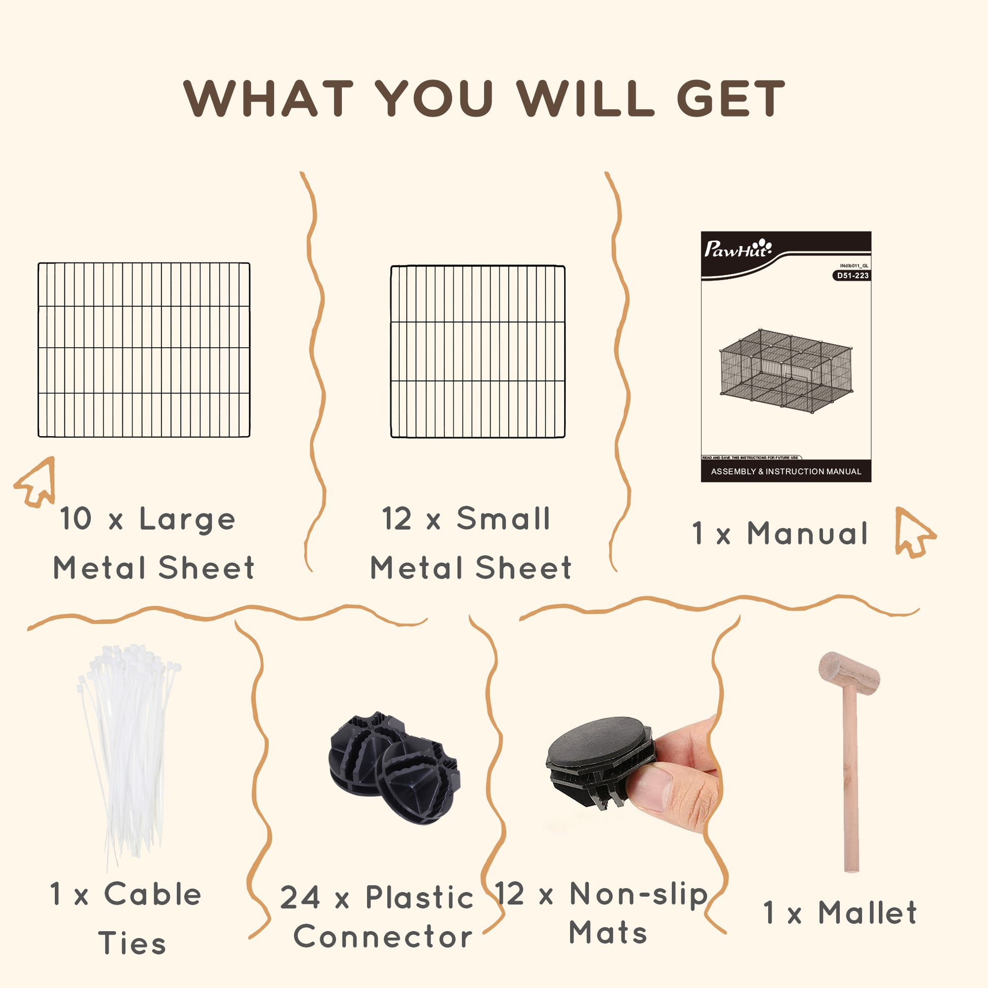 PawHut Pet Playpen DIY Small Animal Cage Metal Fence with Door, 22 Pieces, for Bunny Chinchilla Hedgehog Guinea Pig