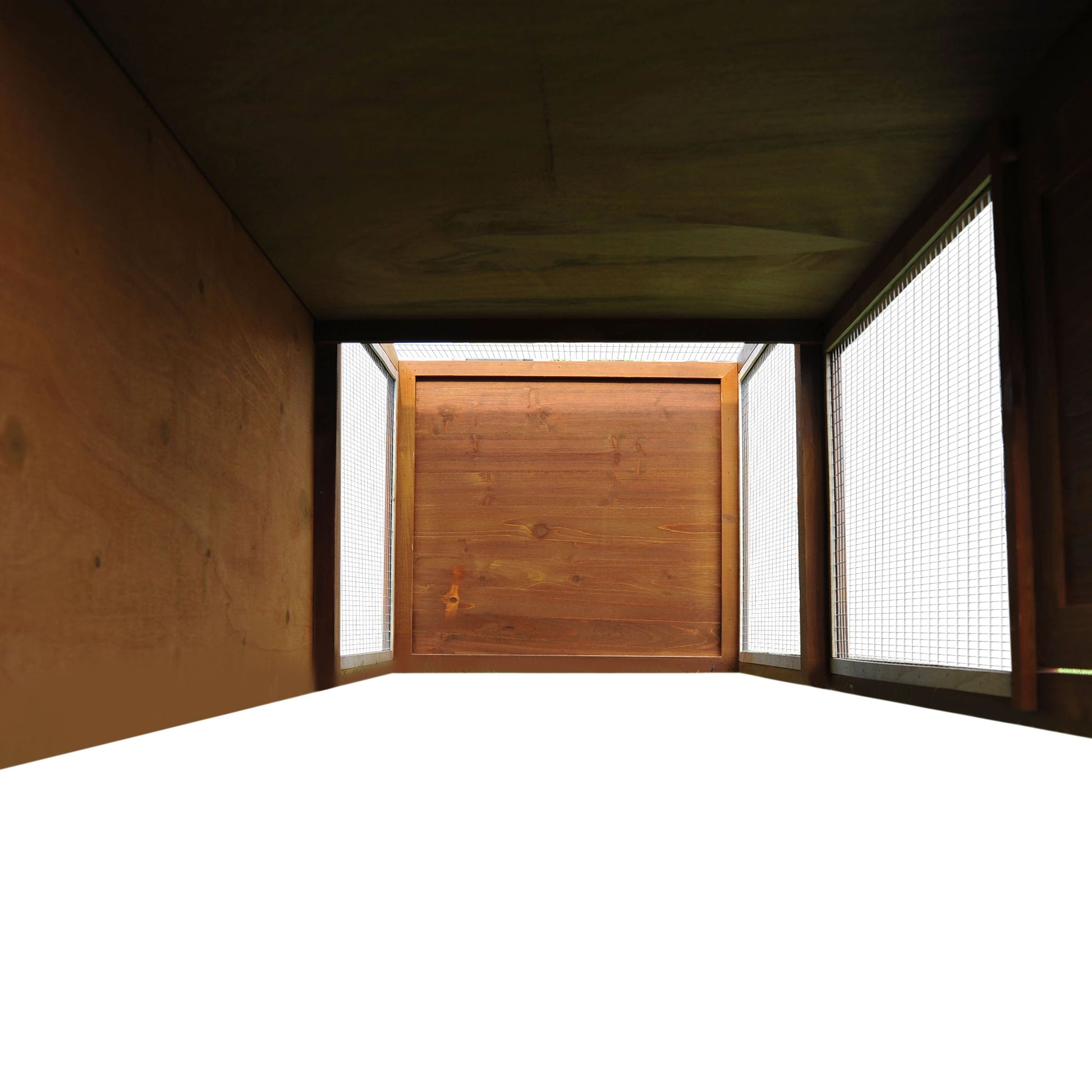- Wire mesh fencing surrounding the run, keeps animals out and allows fresh air to flow through to keep your pet healthy