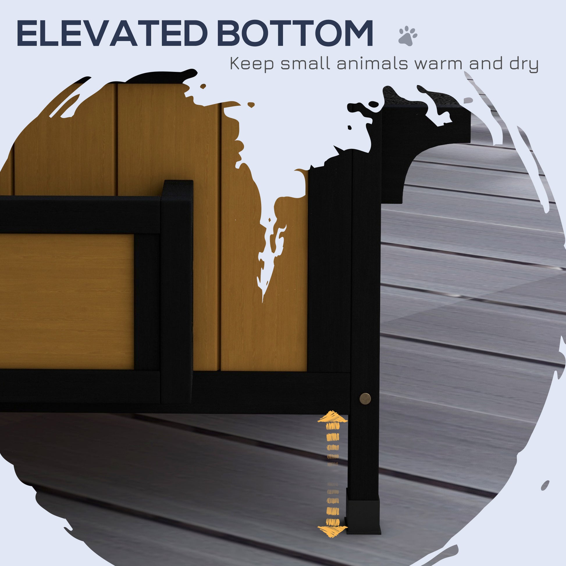 PawHut Wooden Cat House with Flower Pot, Windows, Multiple Entrances, Water-Resistant Roof for Outdoor - Yellow