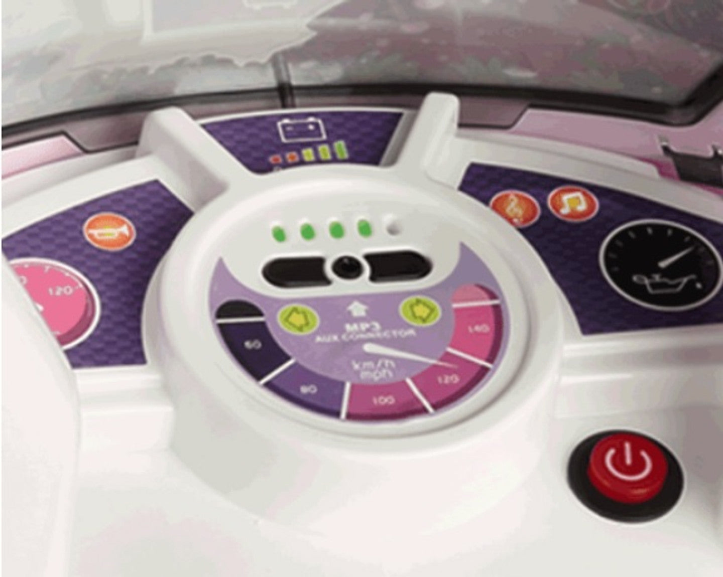 Switch on the electric dashboard by using the START button or pressing the accelerator pedal, and you'll be amazed!! In addition to switching on the LED light on the front lamp, your child will also be able to hear the engine roar, operate the horn and listen to pre-recorded tunes. Moreover, he or she can listen to their favourite music via a port for MP3 players (not included).
