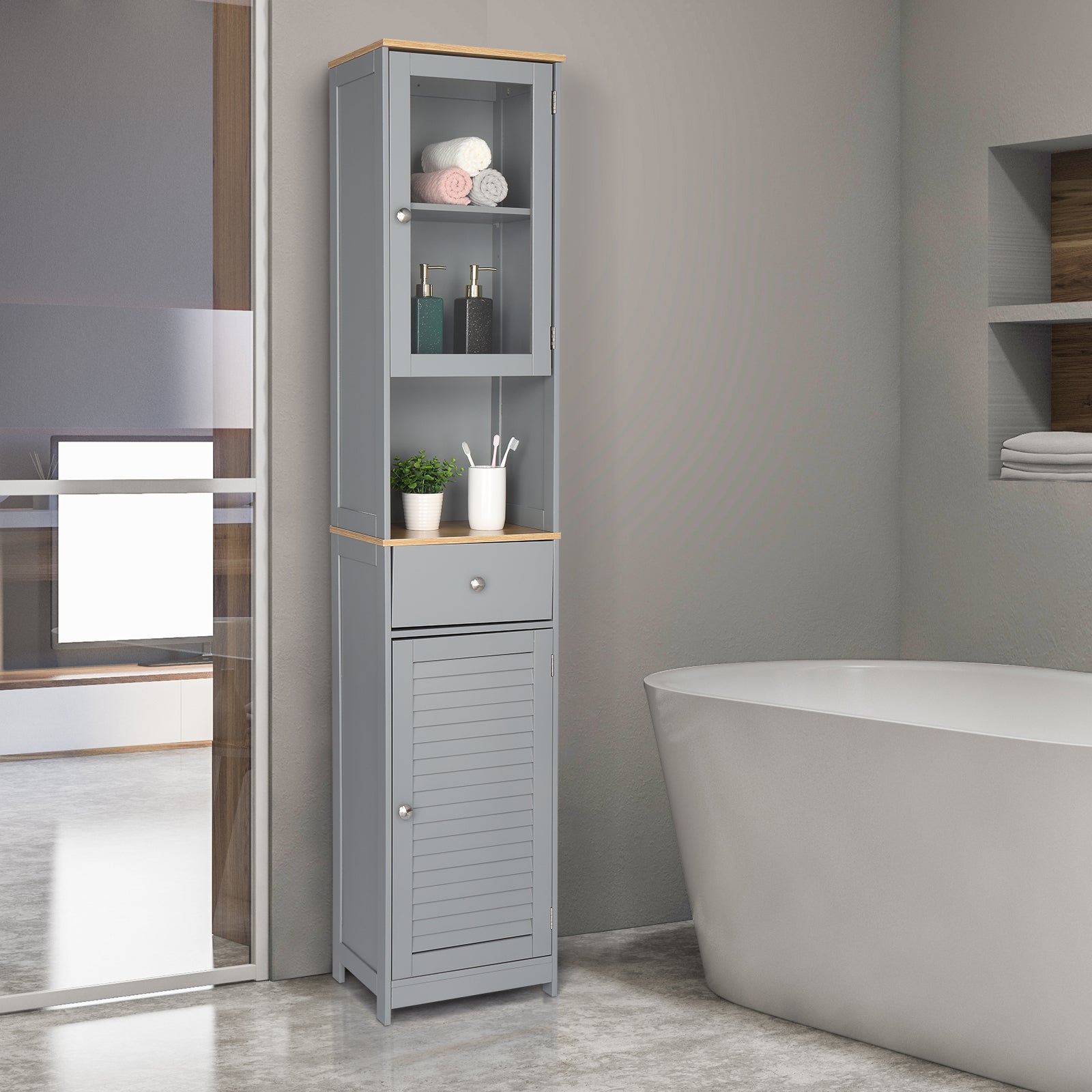 FCH Single Draw 2 Hundred Page Doors MDF Spray Paint Bathroom Cabinet - Grey