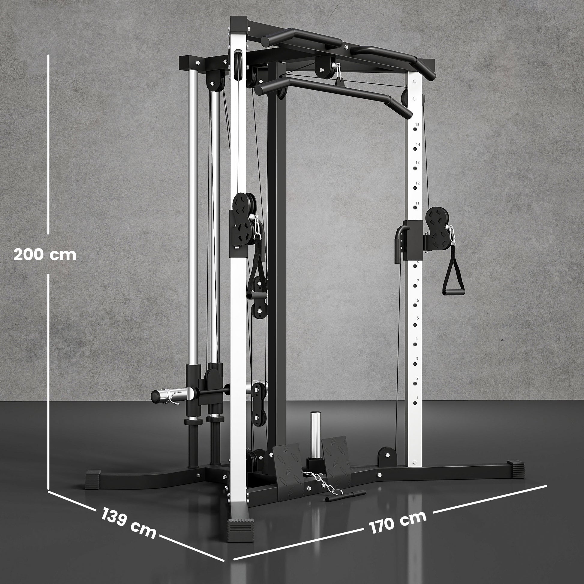SPORTNOW Home Gym Machine, Multifunctional Gym Equipment with High and Low Pulleys, Pull Up Bar, 15-Position Adjustable Strength Training Workout Station for Full Body Fitness