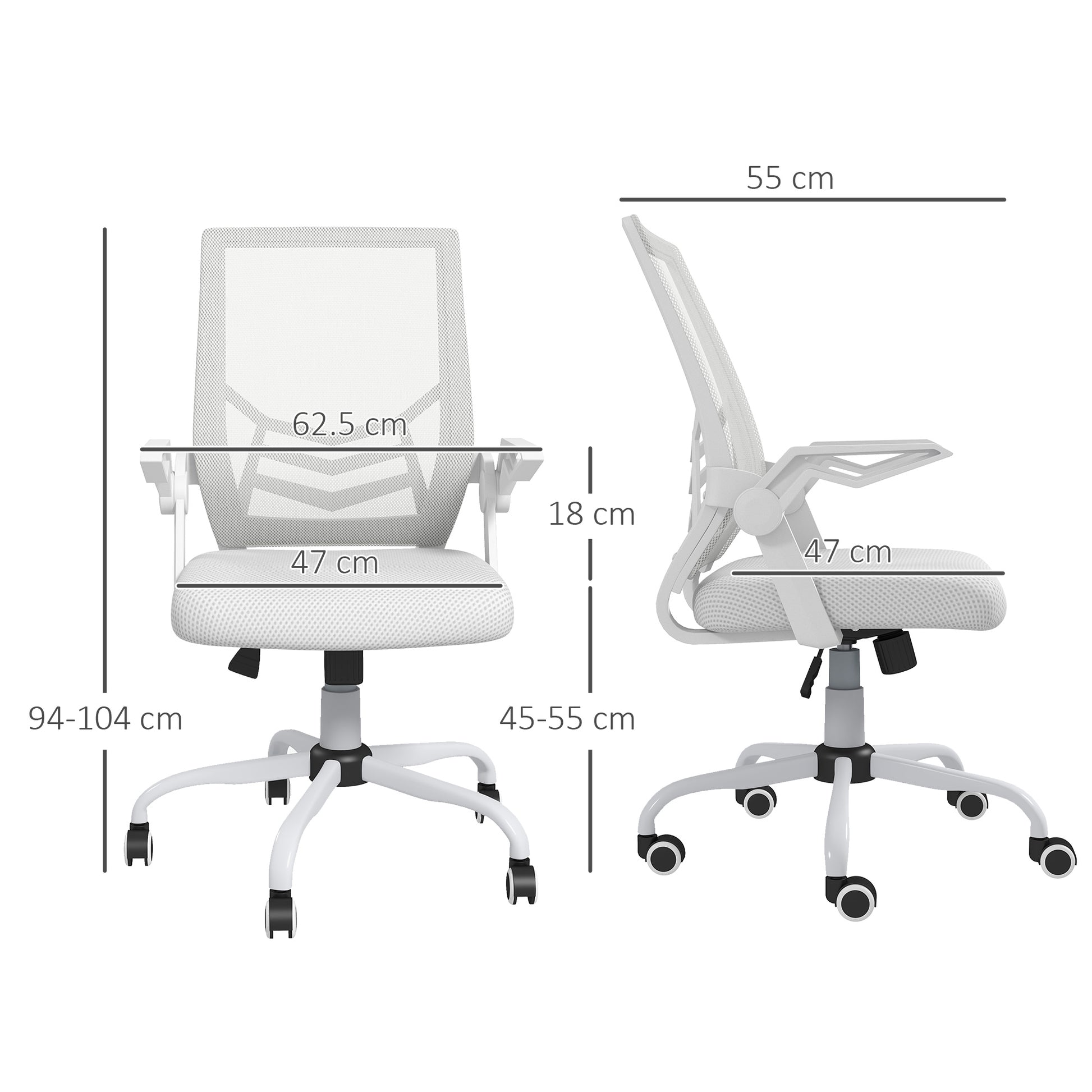 Vinsetto Mesh Office Chair, Computer Desk Chair with Flip-up Armrests, Lumbar Back Support and Swivel Wheels, White