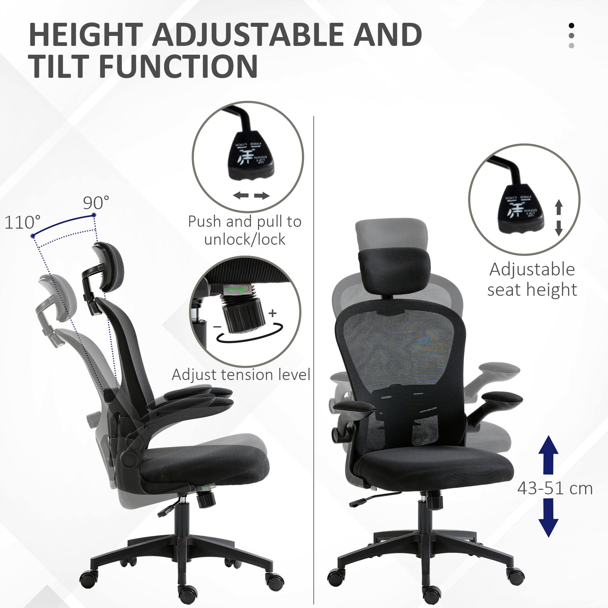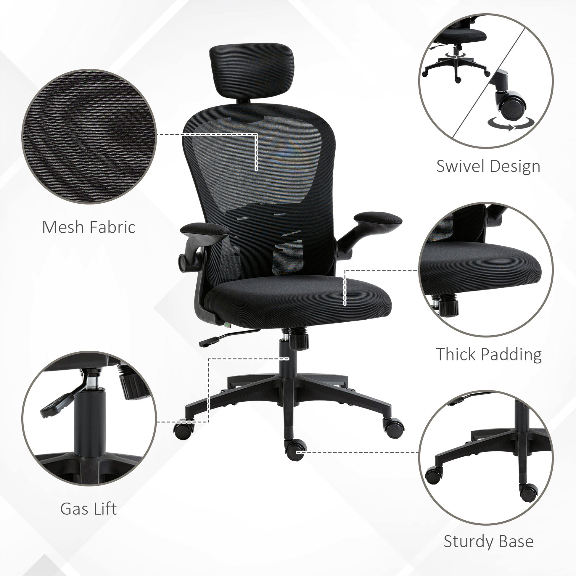 Vinsetto Multi-Adjustable Office Chair, with Lumbar Support, Headrest and Mesh Back - Black