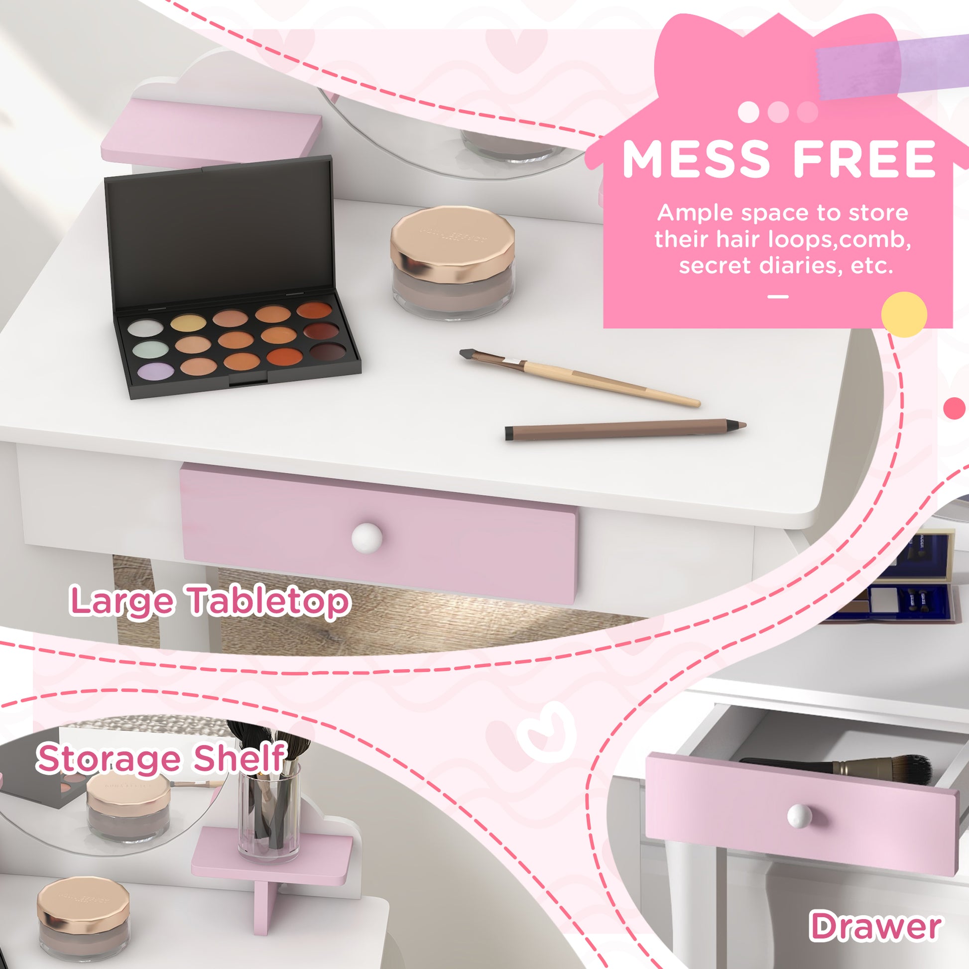 - Three-piece set, includes a vanity table, matching stool and kid's bed