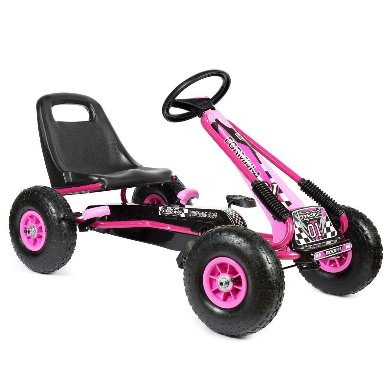 The Zoom Rubber Wheel Go Kart is perfect for kids between 3-7 years old.